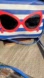 NWOT! Kate Spade Blue and White Striped Crossbody Bag Sunglasses with Red Trim