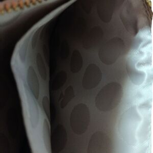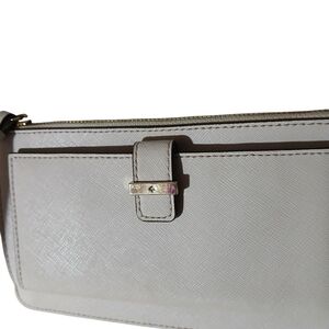 Elegant cream wristlet clutch. Features a sleek design with a front pocket and strap. NWOT so beautiful condition.