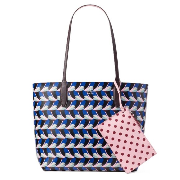 Kate Spade Leather Arch Love Birds Large Reversible Tote Bag w/ Pouch