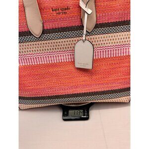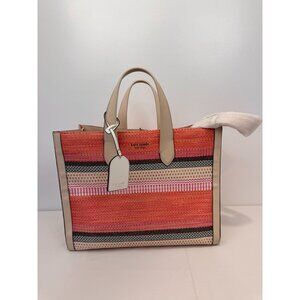 NWOT Kate Spade New York Market Stripe Tote Bag Woven Canvas & Leather Handles B