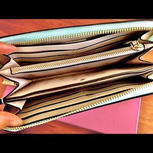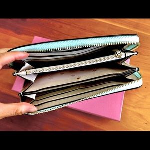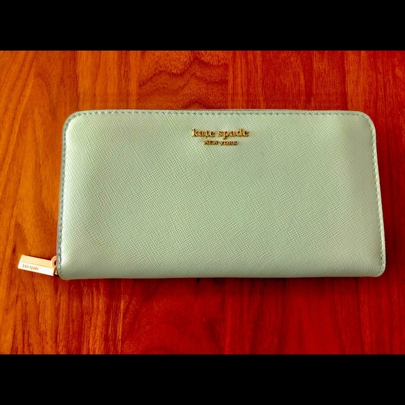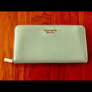 Never used Kate Spade frosty mint continental zip around wallet with gold hardware. Beautiful lined interior. Includes original box and tissue paper.