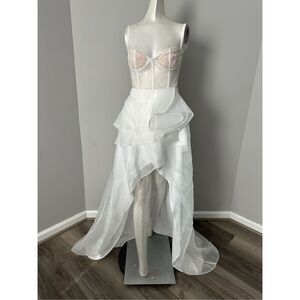 NWOT Katie May Lace Corset Bodice Rose Accent High Low McBeath Gown Ivory Small