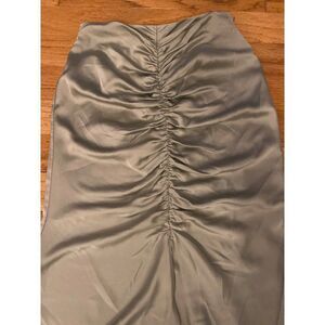 NWOT Keepsake, women's sage green ruched mermaid skirt with bottom flare sz sm