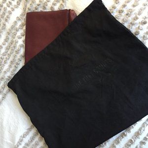Never used Mercer Street leather clutch with removable wrist strap and dust bag. It's a beautiful burgundy/deep red color. The last photo shows some slight materials imperfections on the back of the bag.