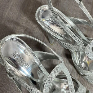 NWOT Kenneth Cole Reaction Silver Rise Guy Strappy Slingback Heels Sandals 8.5