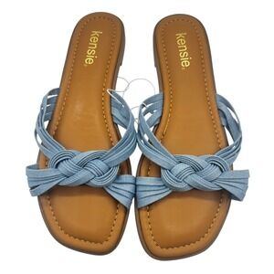 NWOT Kensie Raine Knotted Denim Blue Slide Sandal Flat Heel Casual Summer 8M