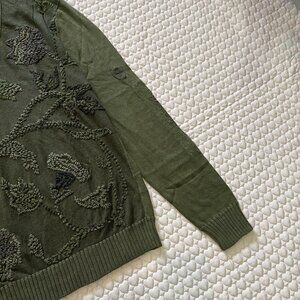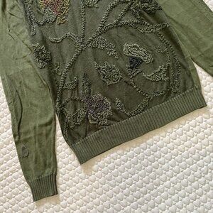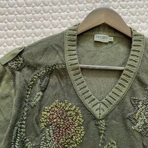 NWOT Kenzo men's Embroidered linen blend sweater Size XL Green