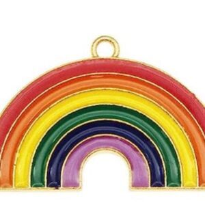Rainbow includes Heart Shape Silver Medal Keychain Spring Snap Clip.