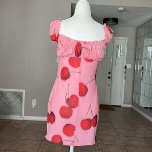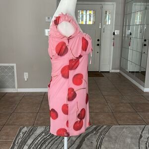 NWOT Kimchi Blue Women's Cherry Print Bianca Mesh Mini Dress Off Shoulder Pink