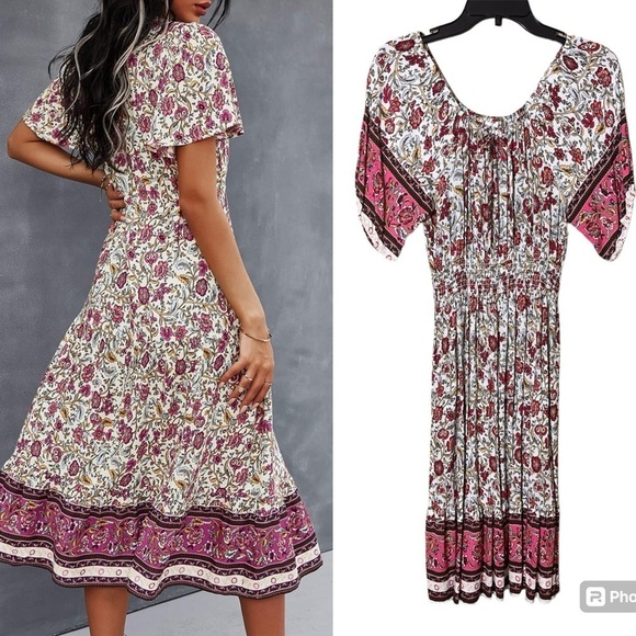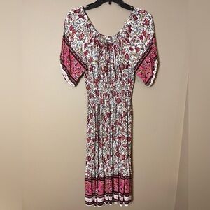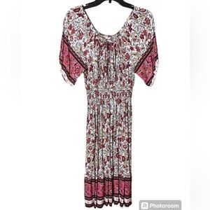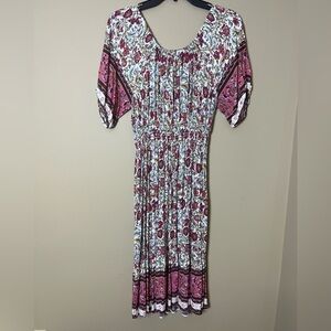 NWOT Kindred Floral Boho Pink Rayon Midi Sun Dress Size XL
