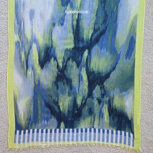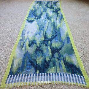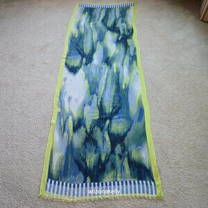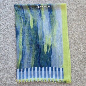 NWOT Kinross Silk/Cashmere Scarf Blue and Yellow