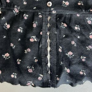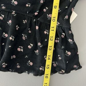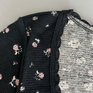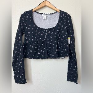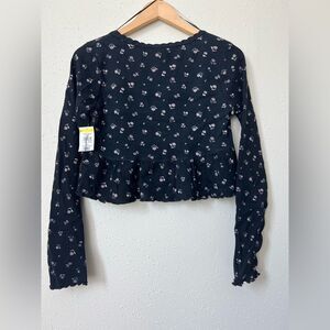NWOT Kirious Floral Babydoll Top Black Waffle Knit Cropped Fairy Grunge Size S