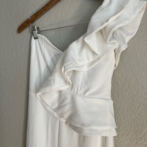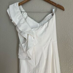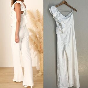 NWOT Kiss Me Again Ivory Ruffled One-Shoulder Jumpsuit