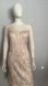 * Bodice/Skirt: Fitted, sheath-style silhouette with a textured, metallic wavy, linear pattern.