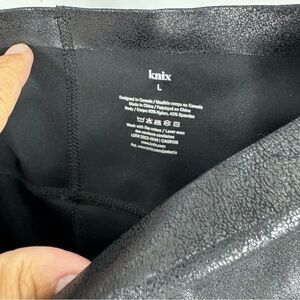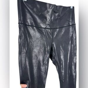 A faux leather look that flatters every curve. Made to contour your shape with gentle waistband compression and smoothing shine.