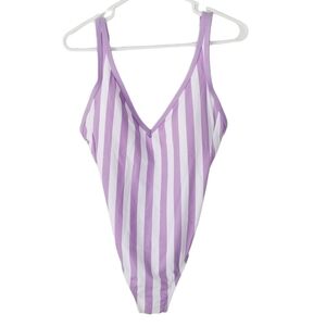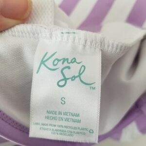NWOT Kona Sol V Neck High Leg Striped One Piece Swimsuit Size S Purple/White