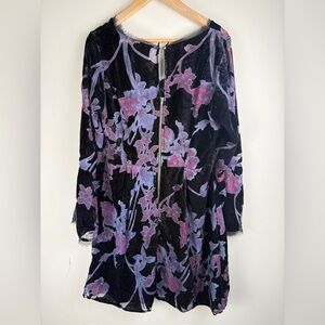NWOT Kut from the Kloth Burnout Black Purple Velvet Sheer Dress Long Sleeve 8