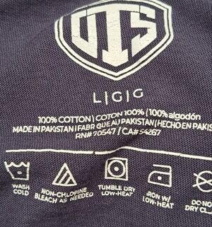 new condition, crew neck, short sleeves, navy blue with tan & white graphic, chest 20" sleeve 8" length 26.5"
