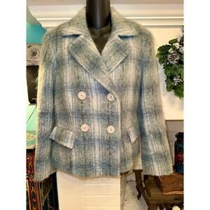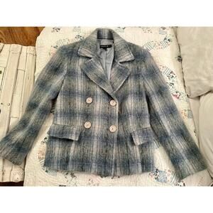 NWOT LAFAYETTE 148 BLUE MOHAIR WOOL BLEND PLAID DOUBLE BREASTED JACKET BLAZER