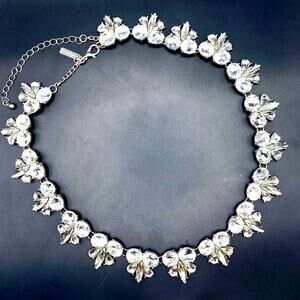 Stunning NWOT statement necklace perfect for an evening or party featuring sparkly white rhinestone clusters linked all the way around.