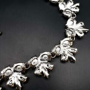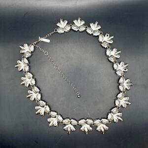NWOT LANE BRYANT Necklace Statement Party Rhinestones Floral Silver Tone -18 In