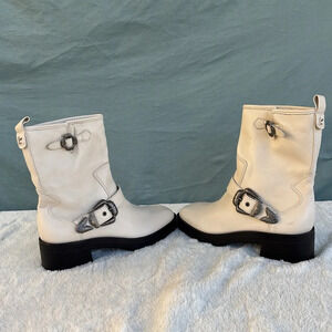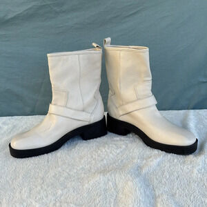 NWOT LARROUDE Women's Hardy Moto Boots Natural White Ivory Leather 9 1/2 *Defect