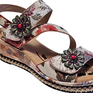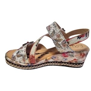NWOT L'ARTISTE Blissful Leather Floral Embossed Slingback Wedge Sandal 41 / US 9.5-10