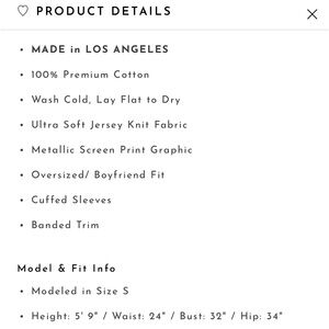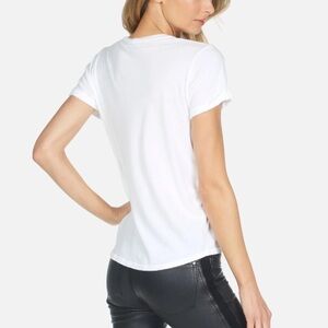 Stylish white graphic tee featuring bold pink and zipper accents. Classic 80’s band the Go Go’s featured. NWOT. High-low hem. More details in photos. Soft and luxurious, as expected from Lauren Moshi. Size large.