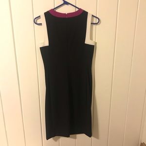 Black sheath dress brand new with color blocked fuchsia neckline and white armholes. So cute! Size 0. Flattering seams, back zip, and lined.