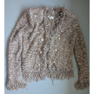 New without tag L'Agence Azure Fuzzy Fringe Boucle Open Cardigan Size Size XS Tan #3E516