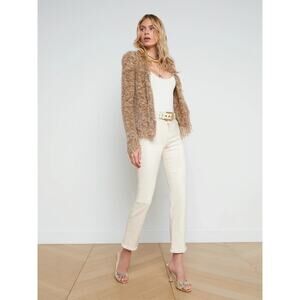 NWOT L'Agence Azure Fuzzy Fringe Boucle Open Cardigan Size XS Tan #3E516