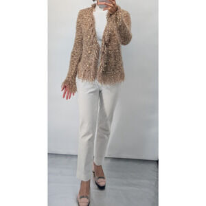 New without tag L'Agence Azure Fuzzy Fringe Boucle Open Cardigan Size Size XS Tan #3E516