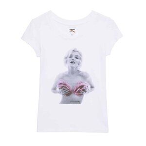 Crafted from 100% cotton, this white L’AGENCE Cory Short Sleeve scoop neck / crew t-shirt features the iconic pink roses Marilyn Monroe portrait from Bert Stern’s collection, her final portrait sitting just 6 weeks before her death. Extremely rare collectible piece. Released June 2020.