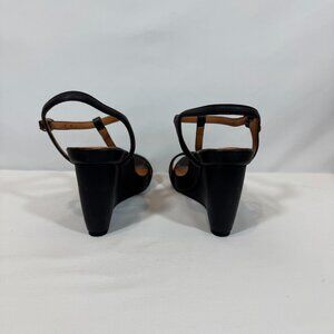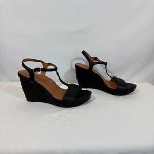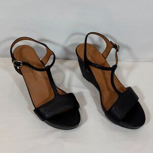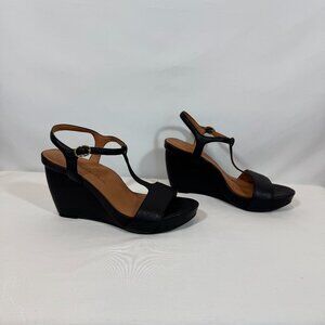 NWOT - L'Amour Des Pieds T-Strap Black Leather Wedge 8M