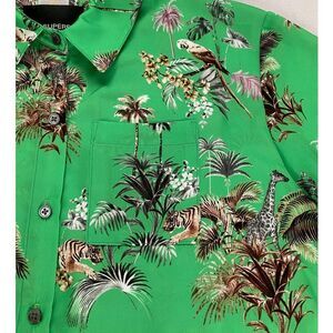 Overstock From a Luxury Resort On Maui...NWOT LE SUPERBE Shirt/Blouse Green with Jungle/Savannah Print...Giraffe, Tiger, Chest Pocket, Button Close