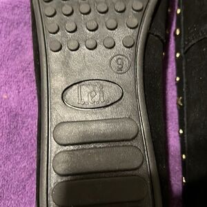 NWOT LEI size 9 black suede slip on flats with studs stars and tassel trim