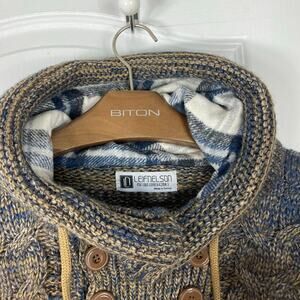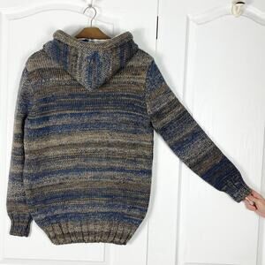 NWOT LEIF NELSON Hoodie Sweater L Aztec Cable-Knit Mock-Neck Drawstring Wool