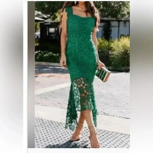 NWOT LENA EMERALD GREEN CROCHET LACE MIDI DRESS