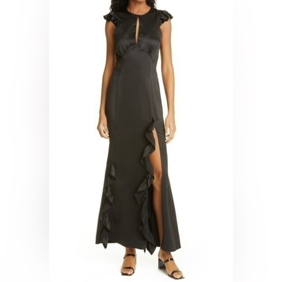 NWOT LES RÊVERIES Ruffle Trim Satin Gown