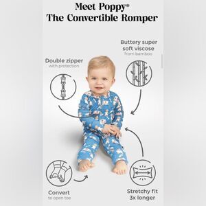 NWOT LEV Baby Boy Bamboo Convertible One Piece Romper Footie Blue Pajamas 12-18M