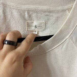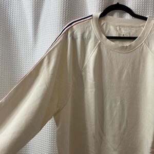 Lined up with side striped sleeves, this extra cozy terry style is the coolest can't-resist. Crew neck. Long sleeves.