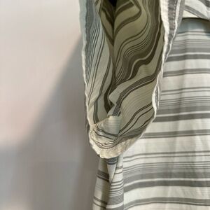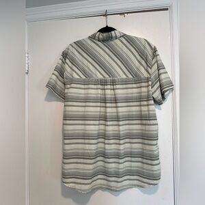 NWOT LL Bean Men’s lightweight Grey White Collared striped short sleeve Button Up. Light and airy, great for summer. Please see pictures measurements.