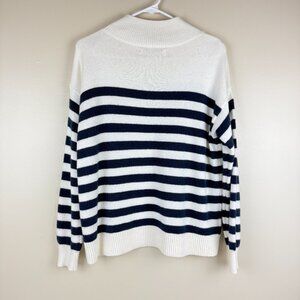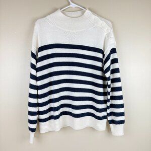 NWOT LOFT Breton Stripe Mock-Neck Sweater w/ Button Shoulder – M