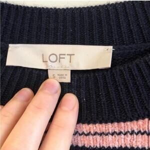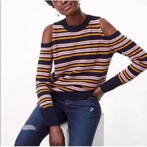 NWOT LOFT Chenille Striped Cold Shoulder Sweater