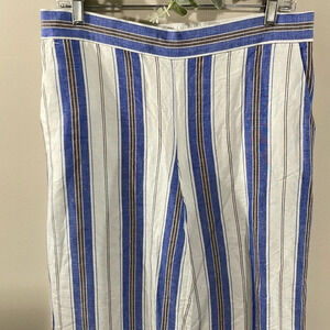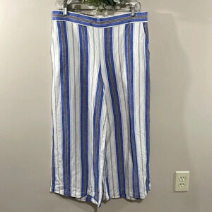 NWOT LOFT Fluid Wide Leg Crop Striped Linen Blend Pants M