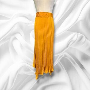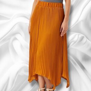 NWOT LOGO by Lori Goldstein Handkerchief Hem Pleated Satin Midi Skirt in Pumpkin