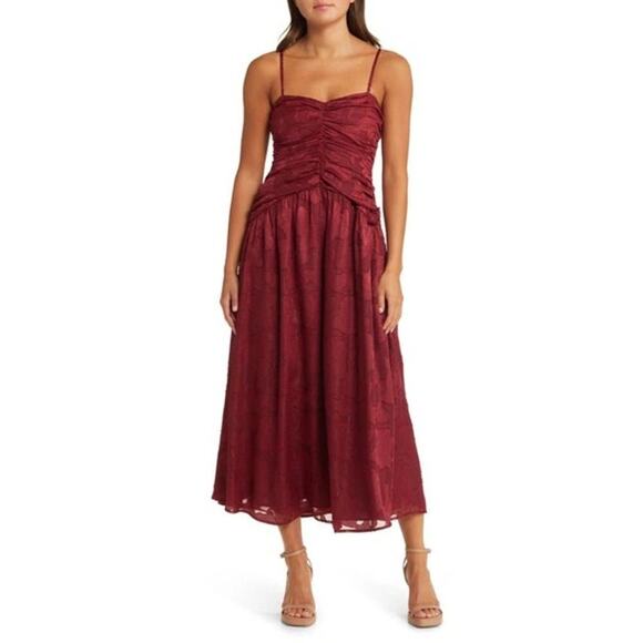 NWOT LOST + WANDER XS Celestial Glow Metallic Stripe Cocktail Dress In Maroon