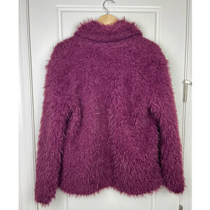 LOVE FIRE Fuzzy Faux Fur Shaggy Jacket Purplish Open Front Cardigan Medium