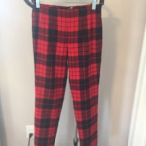 NWOT LOVE MOSCHINO Buffalo Plaid Red & Black 100% Wool Cigarette Pants SZ 2