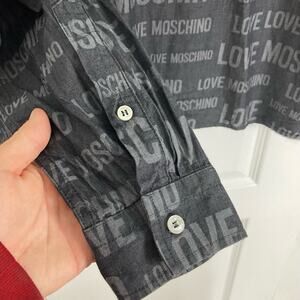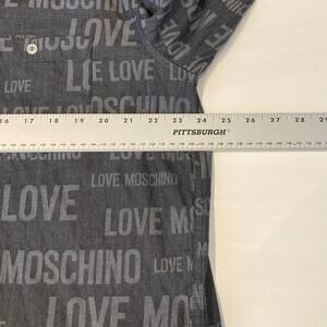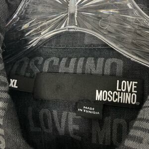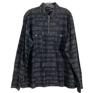 NWOT LOVE MOSCHINO Shirt Men XL Logo Writing Zip Long Sleeve Pocket Collar Gray
